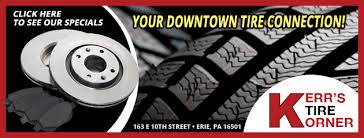 Kerr’s Tire Korner first opened in 1971. We are located at 163 East 10th St. in Erie, PA. Open Monday through Friday from 8:00 AM – 5:00 PM and Saturday from 8:00 AM – 12:00 PM, we provide thorough auto repairs and tire sales to customers from Erie, PA, Fairview, PA, North East, PA, and surrounding areas. As a tire dealer, we feature tires from top tire brands, including Mastercraft, Firestone, and Bridgestone. As an automotive repair center, we perform quality repairs time and time again. Kerr’s Tire Korner: Your downtown tire connection. Based on 197 ReviewsMake This My Store Welcome to Dunn Tire Peach St!Meet our store manager Jeff Hassett and his team of trained professionals. Stop by and get advice or assistance in the selection of your new tires. We also offer an extensive list of additional automotive services for your vehicle. Please check out our "Auto Services" tab listed above.Be sure to visit our Specials/Rebates page for all our current promotions.